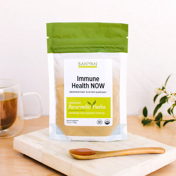 Our Immune Health NOW is packed with some of the most powerful herbs in the Ayurvedic pharmacopoeia, including vasaka. This blend bolsters the body's immune defenses, while also supporting healthy lungs and promoting a strong and robust respiratory tract.