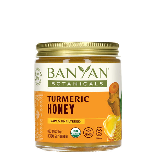 Turmeric Honey combines raw, unfiltered honey with turmeric and ginger. This blend is bright golden in color with a drizzly texture that makes it a perfect addition to snacks, meals, and warm drinks.