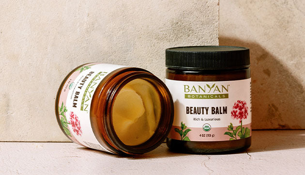 Because Beauty Balm works at a basic, doshic level, the benefits are received in many ways. This balm is often used as a skin cream, moisturizing over worked and dry hands, dry elbows, and dry knees, and as an eye cream, uplifting the tone of the delicate skin around the eyes. Keep this all-in-one beauty product close at hand to use as a lip balm or nail and cuticle cream. End the day with Beauty Balm by massaging your feet and heels, which will soothe the often dry and cracked skin. Pregnant women can enjoy the ritual of nourishing the skin that is enveloping their growing child with a Beauty Balm belly rub. Play with it and discover even more uses for this amazing and nourishing balm!