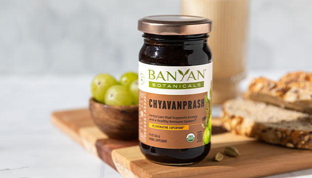 Chyavanprash is a rejuvenating herbal jam traditionally used to support a healthy immune system, healthy energy, and more. The name comprises the fusion of two Sanskrit words, "chyavan," which refers to a wise sage, and "prasha," meaning a spread or edible food. Together, the term denotes food that is good to eat and revered for its ability to support health and wellness.