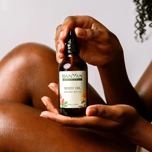 Banyan Botanicals is your one-stop shop for some of the finest natural and organic massage oils. What makes our oils unique is the fact that they are prepared in small batches in the traditional Ayurvedic method of cooking the raw herbs into the oil itself. This is done using low heat over a period of several days, allowing the herbal properties to be infused into the oil, making the use of these oils as a daily body oil especially beneficial as they nourish the tissues from the outside-in.