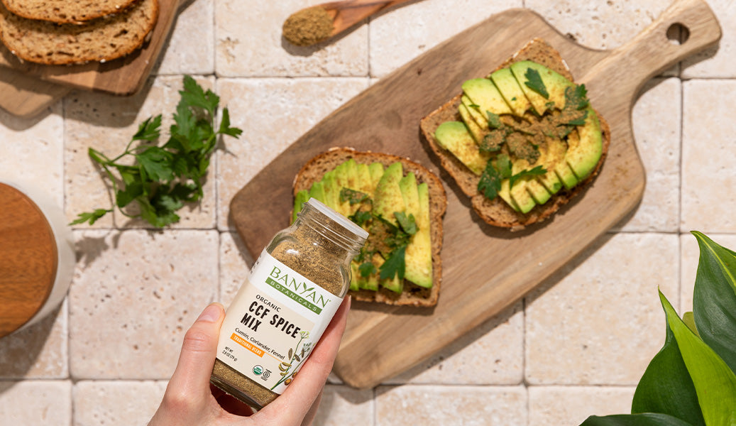 Inspired by Ayurveda's famous CCF Tea, CCF Spice Mix fuses cumin, coriander, and fennel into a mild and savory spice mix designed for everyday kitchen use. Try adding it to soups, curries, and stir-fries, or sprinkle it on top of meals for extra flavor.