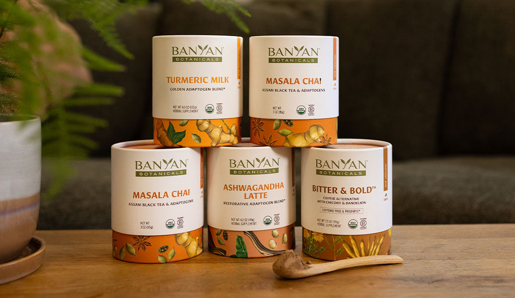 Whether you're looking to treat yourself or you want something special for the cozy drink lover in your life, this array of tasty drink mixes is sure to please. Made from the finest quality organic ingredients, these drinks feature star Ayurvedic herbs, including adaptogens ashwagandha and shatavari, liver-friendly milk thistle, turmeric, tulsi, and more—it's never been so enjoyable to get your daily intake of herbal support.