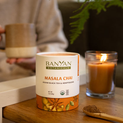 - Masala Chai is our signature gently-caffeinated chai blend made with Assam black tea, milk thistle, shatavari, and tulsi.*