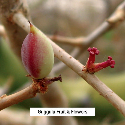 Guggulu is the common name for the flowering mukul myrrh tree, a small, thorny tree that grows in the arid climates of India. Guggulu also refers to the resinous substance formed from the sap of the guggul tree. Renowned for its cleansing and rejuvenating properties, this myrrh resin has been used in Ayurvedic medicine for thousands of years.