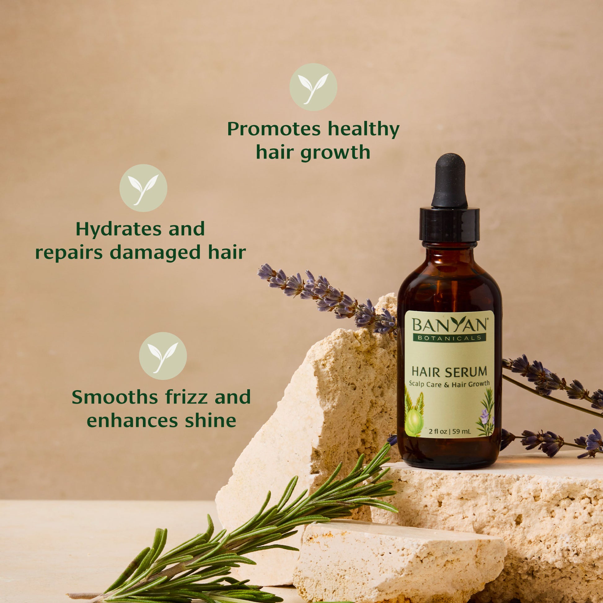 Hair Serum features hydrating oils and key herbs renowned for supporting healthy hair growth, including jojoba oil, castor oil, bhringaraj, amla, and rosemary. Perfect for daily use, this versatile serum can be used to promote hair growth, tame frizz, smooth flyaways, and add protection from heat and environmental damage.