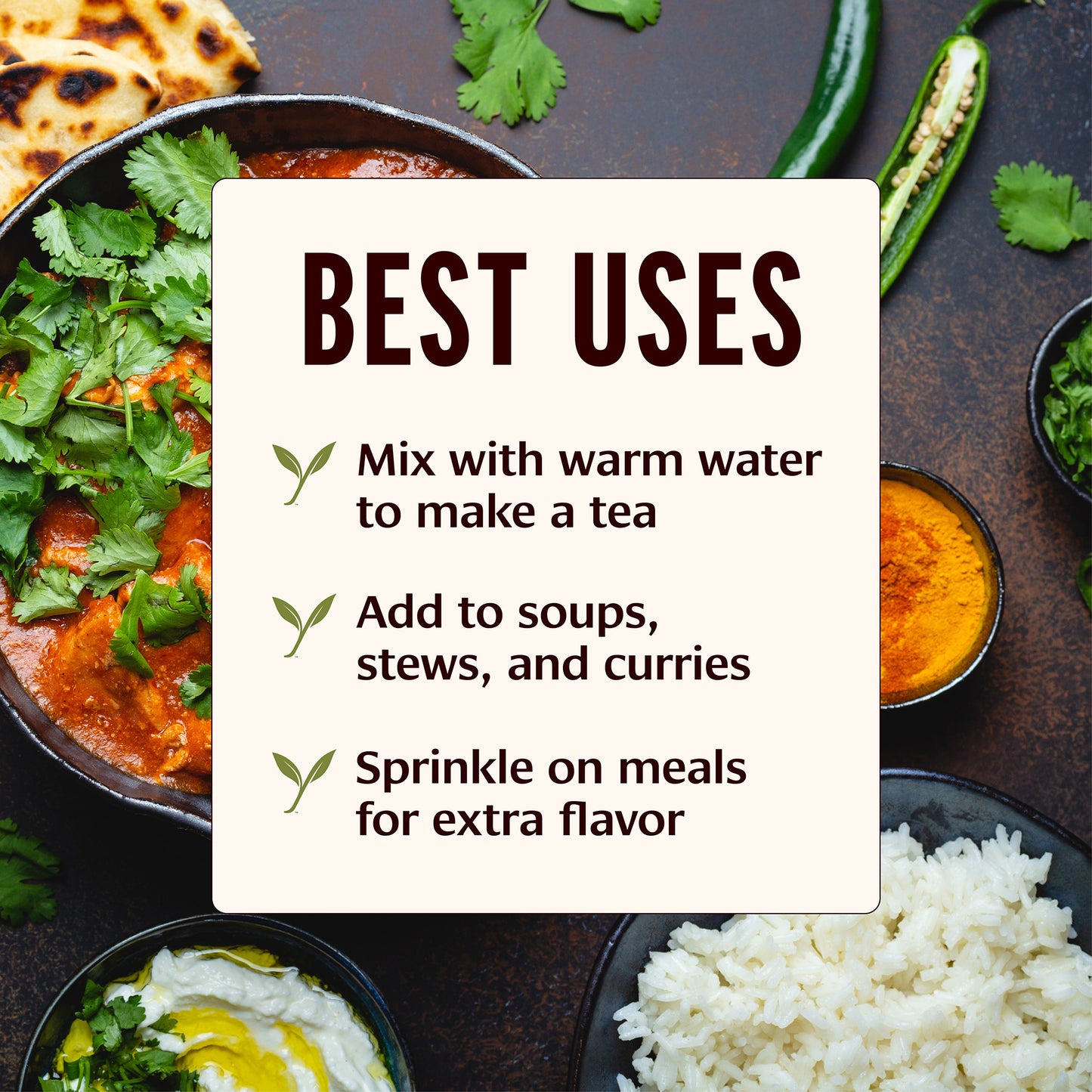 Warm, earthy, and slightly bitter, cumin seeds are used in cuisines around the world and are common in Ayurvedic formulas to support digestion.*
