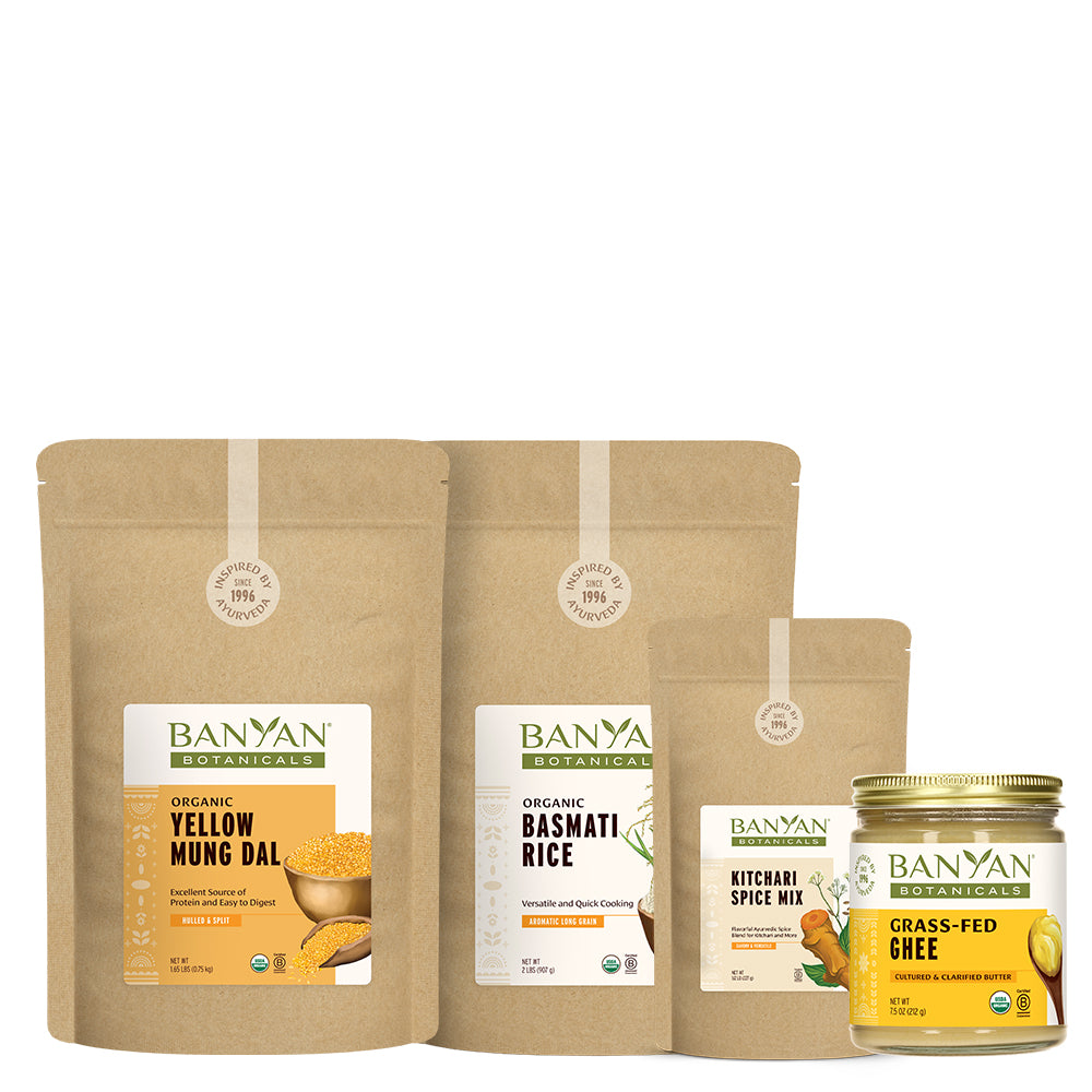 Learn MoreKitchari is a thick, soupy meal made with rice, dal, and spices. It is easy to digest and often enjoyed as a part of an Ayurvedic cleanse. This kit provides the basic supplies to make flavorful and nutritious meals, and it is enough for five days on a kitchari monodiet.