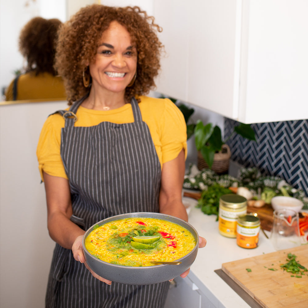 Inspired by kitchari, Ayurveda's popular cleansing dish, this mix is a flavorful blend of essential spices, including turmeric, mustard seeds, and asafoetida. Use it to make kitchari or try it on roasted veggies, stir-fry, soup, or popcorn. Life just got a whole lot easier—and tastier too!