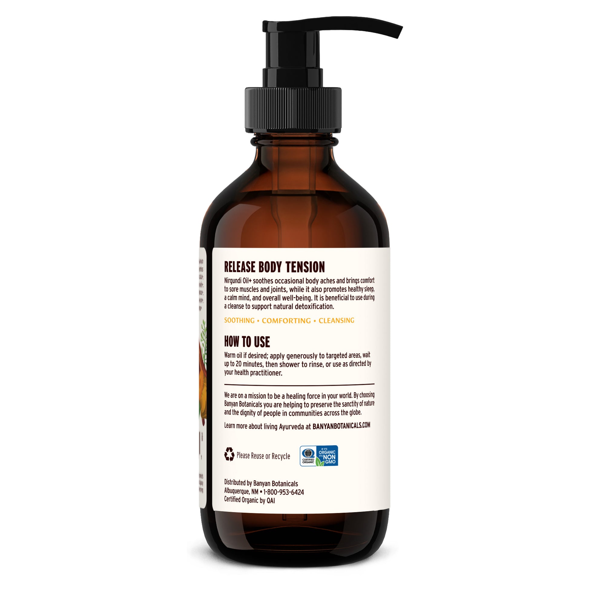 Formulated by Ayurvedic physician Vasant Lad, BAM&S, MASc, Nirgundi Oil+ is a relaxing herbal oil often recommended during cleanses. It promotes overall well-being by soothing sore muscles and joints, reducing body tension, and supporting a calm mind and restful sleep.