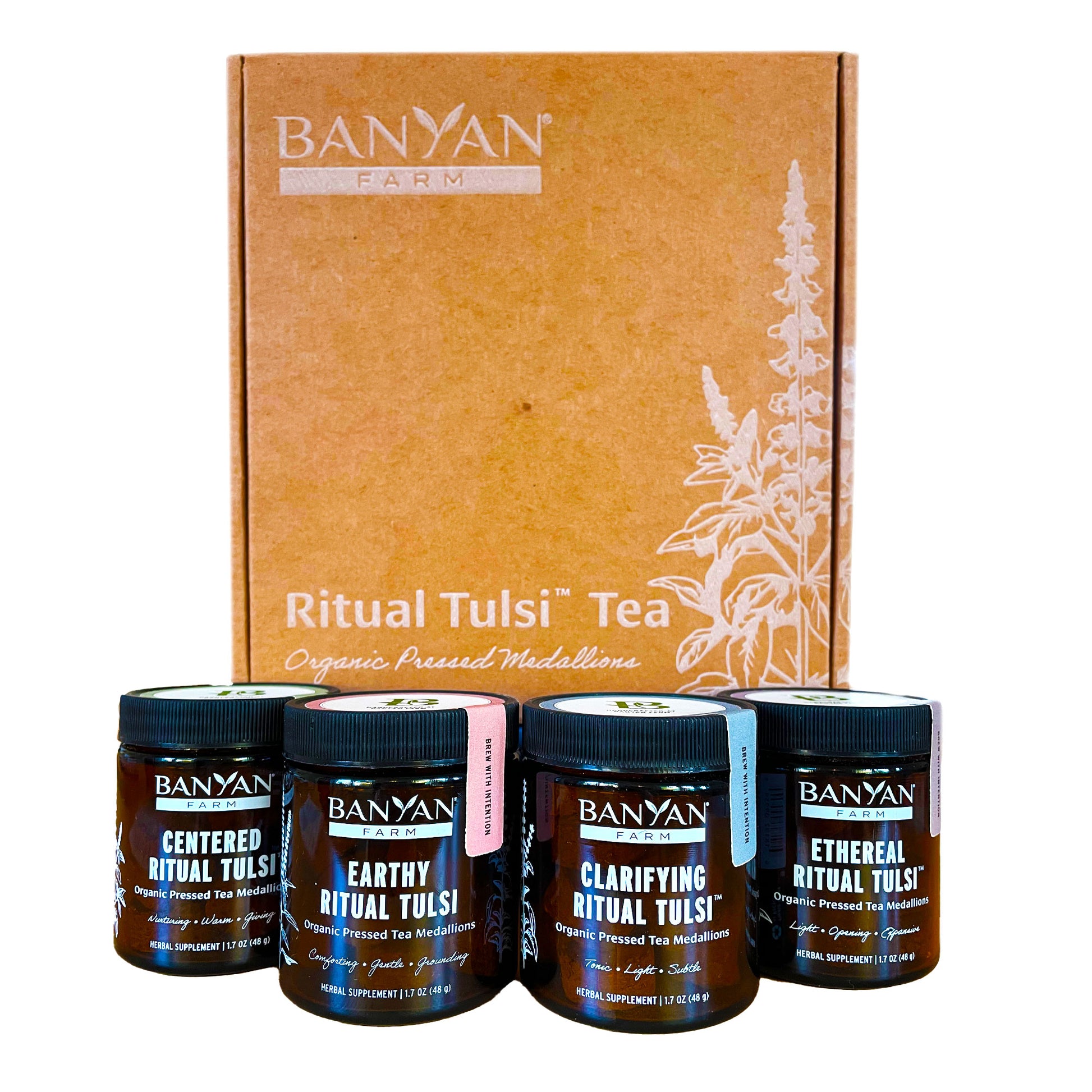 Learn MoreStep into ceremony and reconnect to your sacred self with the power of tulsi. Featuring four unique tulsi varietals, this gift box offers a transformative tea experience that fosters presence, connection, and expansion.