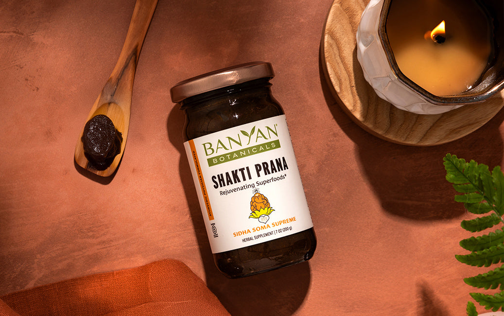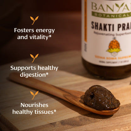 Formulated by Ayurvedic physician Vasant Lad, BAM&S, MASc, Shakti Prana is a rejuvenating blend of ghee, honey, and herbal superfoods, including ashwagandha and shatavari. It features all six tastes and helps to balance all three doshas.