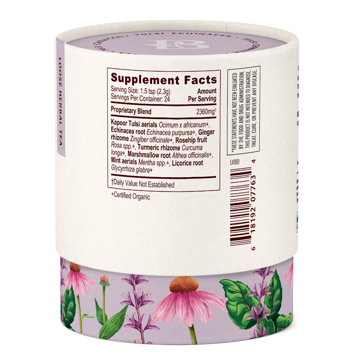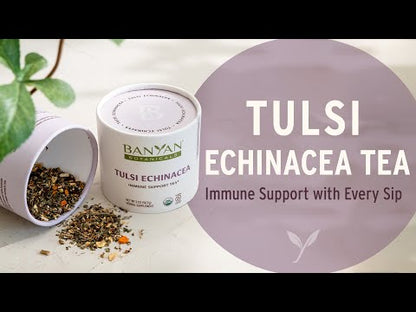 Combine 1½ teaspoons Tulsi Echinacea with 8 ounces hot water. Let steep for 5–10 minutes, strain, and serve.