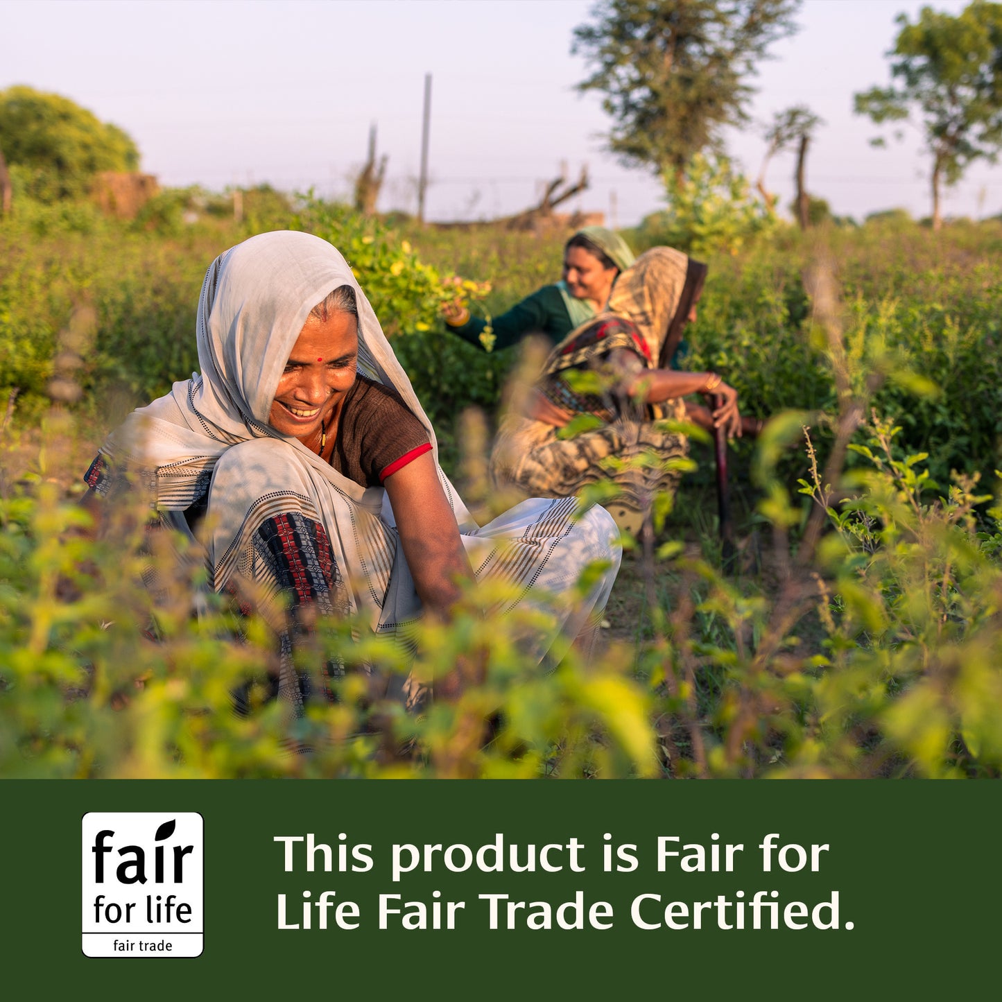 Fair for Life is a fair trade certification that looks at the entire journey of an ingredient, from harvest to the final product sold to our customers. It also goes beyond labor—it certifies social and environmental responsibility across an entire supply chain and within an entire business.