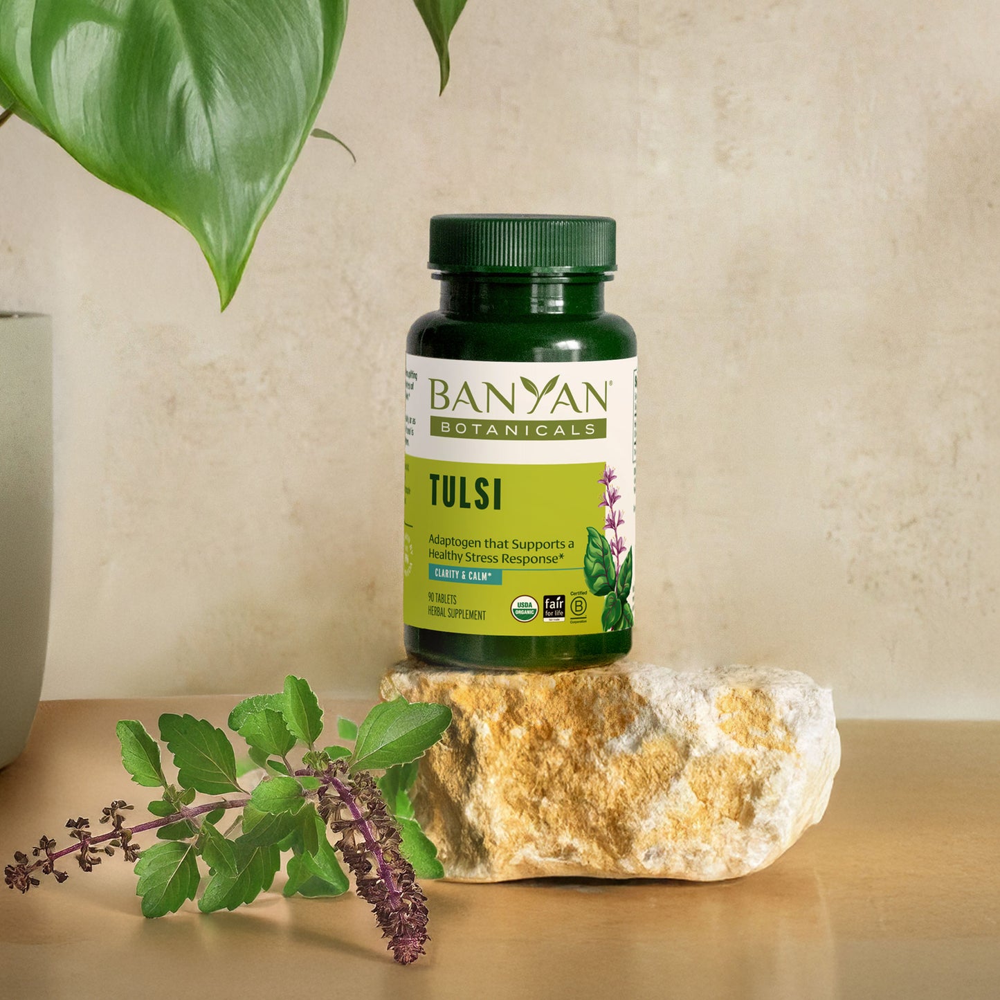 Tulsi is renowned for its whole-body benefits, from supporting a healthy heart and lungs to its adaptogenic qualities that help in times of stress, providing a sense of calm well-being. Tulsi is also said to have more subtle influences, such as heightening awareness, opening the heart, and bestowing the energy of love, devotion, faith, and compassion.*