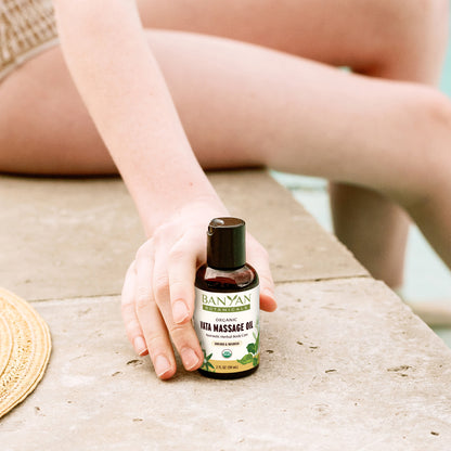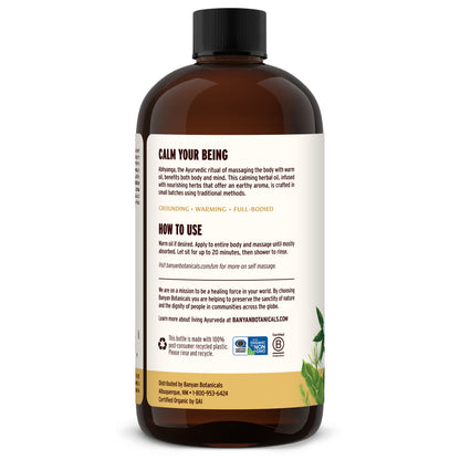 Learn MoreFull body massage with warm herbal oil is one of Ayurveda's most beloved self-care rituals. Crafted with warming herbs that nourish and ground vata dosha, this earthy massage oil relaxes the body, lubricates the tissues, and supports vitality and strength.